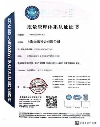 浏览公司详情上海尚乐五金有限公司是一家集研发、生产、销售和服务于一体的专业金属制品加工生产厂家。主要生产电缆桥架、支架生产,电线、电缆经营,阀门和旋塞销售,化工产品销售等。公司自创办以来,特别注重新技术、新产品的引进与开发,不断吸收引进和消化国内外先进技术和经验,先后通过合作、自行开发设计出具有美观、节能、轻质、高强、耐腐蚀等特性的一系列新型电缆桥架、支吊架产品。